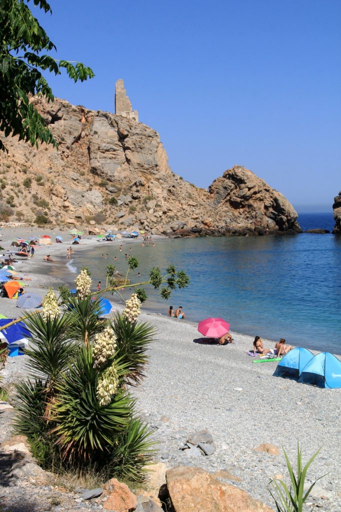 Prosigue hacia la Playa de la Rijana, custodiada por la Torre de la Rijana (siglo XV) de origen nazarí. Aquí también hallarás un aljibe árabe y un yacimiento prehistórico.